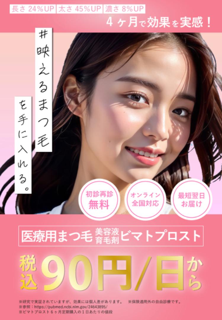 東京オンラインクリニックでは、『まつ毛を伸ばしたい』・『まつ毛を生やしたい』という人向けにまつ毛育毛剤を処方をしてくれます♪