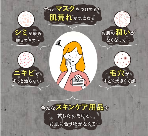 ほかにも、ニキビや毛穴などなど年齢とは関係のない肌荒れにも悩んでいる方が多いでしょう。